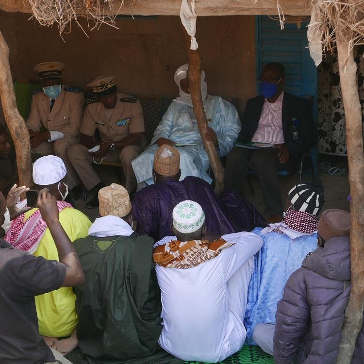 Le Gouverneur de Mopti, le Colonel-Major, Abass DEMBELE, a remercié la MINUSMA pour son soutien continu et son engagement aux côtés de l'Etat malien, et notamment à travers les programmes liés à la RVC. En marge du lancement des projets RVC, la délégation s’est d’abord entretenue avec les autorités locales ténenkoises, avant de rendre une visite de courtoisie aux dignitaires traditionnels et religieux du quartier Djipoli où réside la chefferie traditionnelle de la ville.