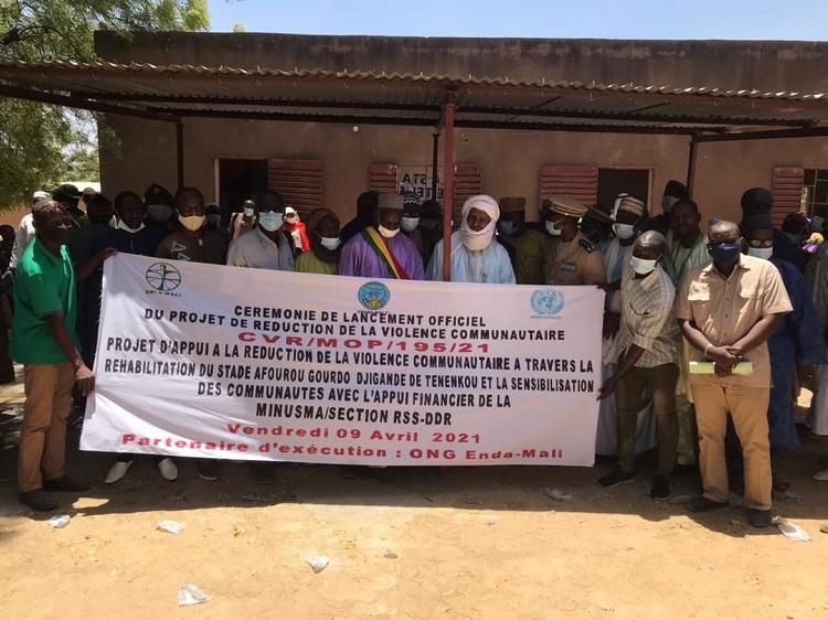 Le 9 avril dernier, le Bureau régional de la MINUSMA à Mopti a officiellement lancé deux projets de réduction de la violence communautaire (RVC) dans la région, à Ténenkou et Diafarabe. Le premier vise à réhabiliter le stade de Ténenkou et le second porte sur la formation professionnelle et la dotation en kits de 165 jeunes à risque de radicalisation violente.