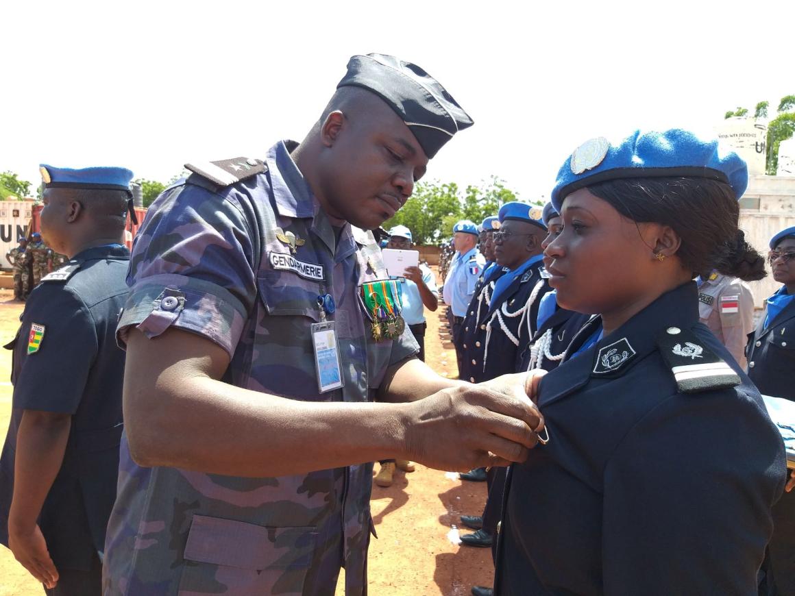 Vêtus d’un béret et d’une écharpe aux couleurs des Nations unies, les 139 membres de l’Unité de police constituée du Togo, dont 12 femmes, ainsi que 5 femmes sur les 27 officiers de police individuels venant de 13 différents pays ont reçu, le 4 septembre 2019, la médaille des Nations unies en reconnaissance de services méritoires rendus en faveur de la paix au Mali.