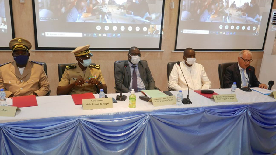 En effet, le thème de l’atelier, financé par les fonds programmatiques de la MINUSMA, portait sur le traitement des affaires de terrorisme et la coordination entre les juridictions territorialement compétentes et le Pôle Judiciaire Spécialisé (PJS) en matière de lutte contre le terrorisme et la criminalité transnationale organisée. L’objectif vise à améliorer la coordination entre les autorités judiciaires impliquées dans les affaires liées au terrorisme, notamment entre les autorités de poursuite basées dans le centre du Mali et les magistrats et enquêteurs des unités d'enquête spécialisées de Bamako. Il a donc réuni des magistrats, officiers et agents de police judiciaire, ainsi que des représentants du PJS et de la Brigade d’investigation spéciale (BIS). En raison de la situation sanitaire liée à la COVID 19 et des mesures préventives contre sa propagation, certains participants et formateurs ont pris part à l’activité à distance, connectés virtuellement depuis Vienne (Autriche), Dakar (Sénégal) et Bamako (Mali).