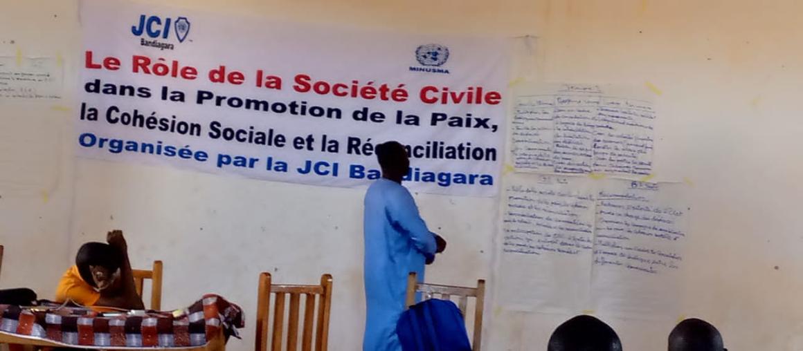 Avec l’appui de la MINUSMA, la Jeune Chambre Internationale (JCI) de Bandiagara s’est associée à l’Institut malien de recherche-action pour la paix (IMRAP) pour organiser une caravane de la paix. Elle a permis de sensibiliser, entre le 5 et le 27 avril dernier, environ 500 femmes et jeunes, ainsi que d’autres membres de la société civile issus d’une dizaine de communes de cette région du Centre.