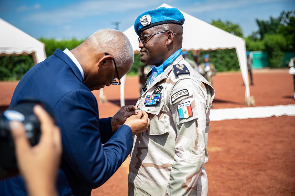 À cette occasion, 15 officiers de police et 56 militaires venant de 22 pays ont également été décorés de la médaille des Nations unies. « Peu importe la durée de votre mission, soyez assurés que chacun d'entre vous a contribué aux réalisations de la MINUSMA au fil des années, apportant une immense différence dans la vie de nombreuses personnes au Mali » a souligné El-Ghassim WANE, Chef de la MINUSMA.