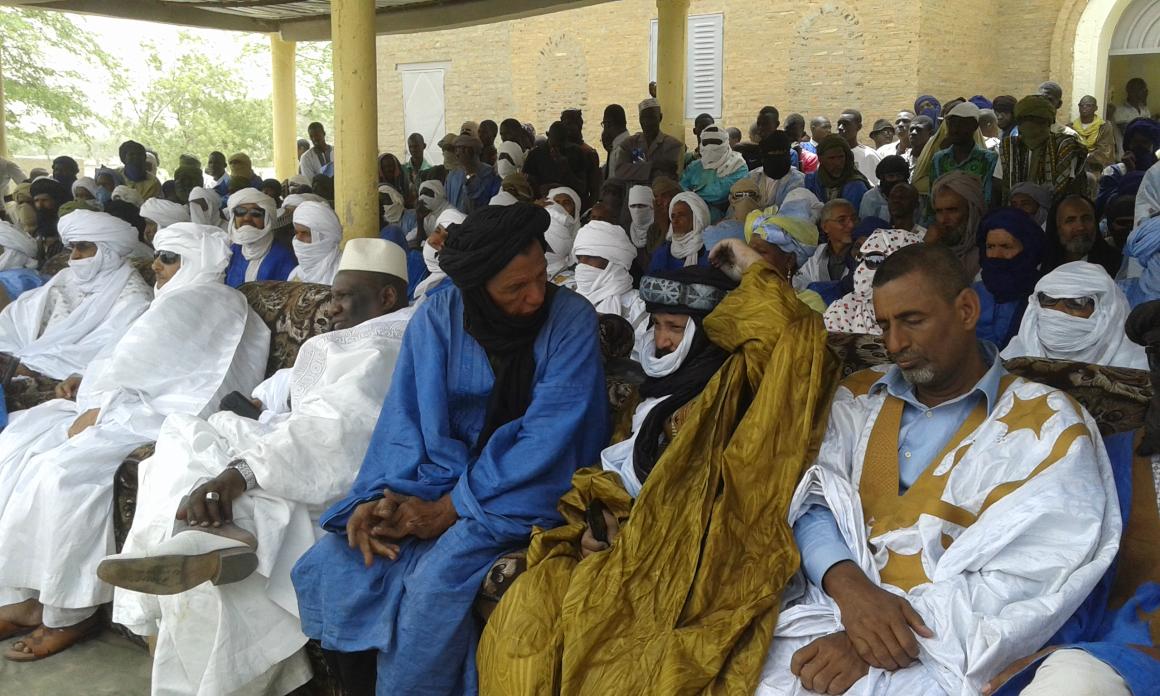 C’est dans cette localité que s’est tenue, le 15 avril dernier, une importante rencontre intercommunautaire. Initiée par le maire de la ville et placée sous l’égide du Ministère de la Réconciliation nationale, elle a vu la participation du Ministre Zahabi Ould Sidi Mohamed, des élus de la région (députés et maires), mais également les maires des villes mauritaniennes voisines, de plusieurs délégations de réfugiés maliens de Mauritanie (touareg, peuhls…), une délégation conjointe de la CMA et de la Plateforme, ainsi que du Directeur Adjoint de la Division des Affaires Civiles de la MINUSMA Vahram Abadjian.