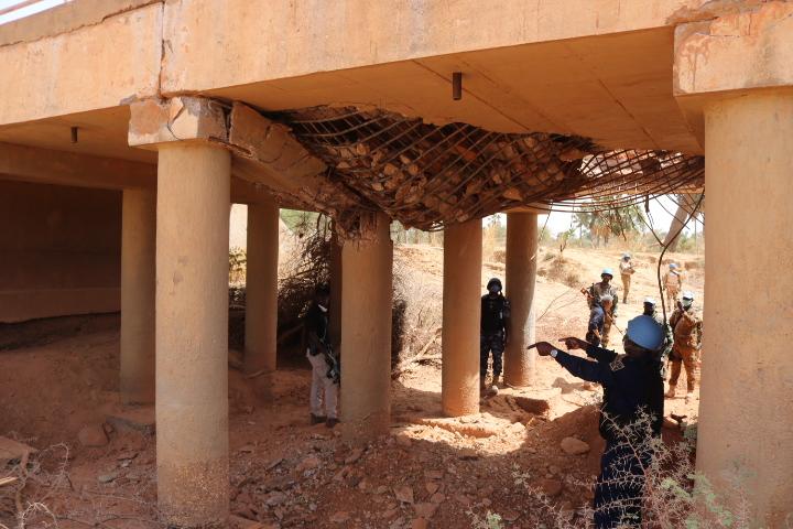 Le 8 mai dernier, le Commandant Régional de la Police des Nations Unies (UNPOL/MINUSMA) et le Commandant du Secteur Centre de la Force de la MINUSMA ont effectué une mission préliminaire de reconnaissance sur le pont de Songho endommagé après les attaques survenues successivement les 25 mars et 4 mai 2020.