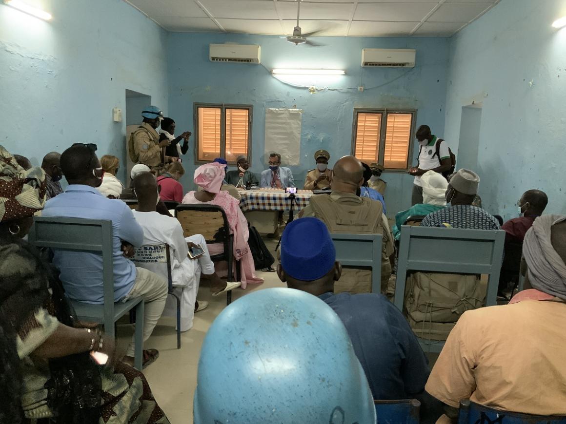 Les membres du conseil communal, les leaders religieux et traditionnels, les conseils de la société civile et de la jeunesse, la Coordination des associations de femmes étaient les interlocuteurs de la délégation venue de Tombouctou. Celle-ci comprenait entre autres plusieurs sections dont celles de la Réforme du Secteur de la Sécurité- du Désarmement, de la Démobilisation et de la Réinsertion/Réintégration (RSS-DDR), de la Stabilisation et du Relèvement, ainsi que les divisions des Affaires civiles, des Droits de l’Homme et de la Protection et celle de la Communication. Deux journalistes de médias de Tombouctou étaient également de la mission.
