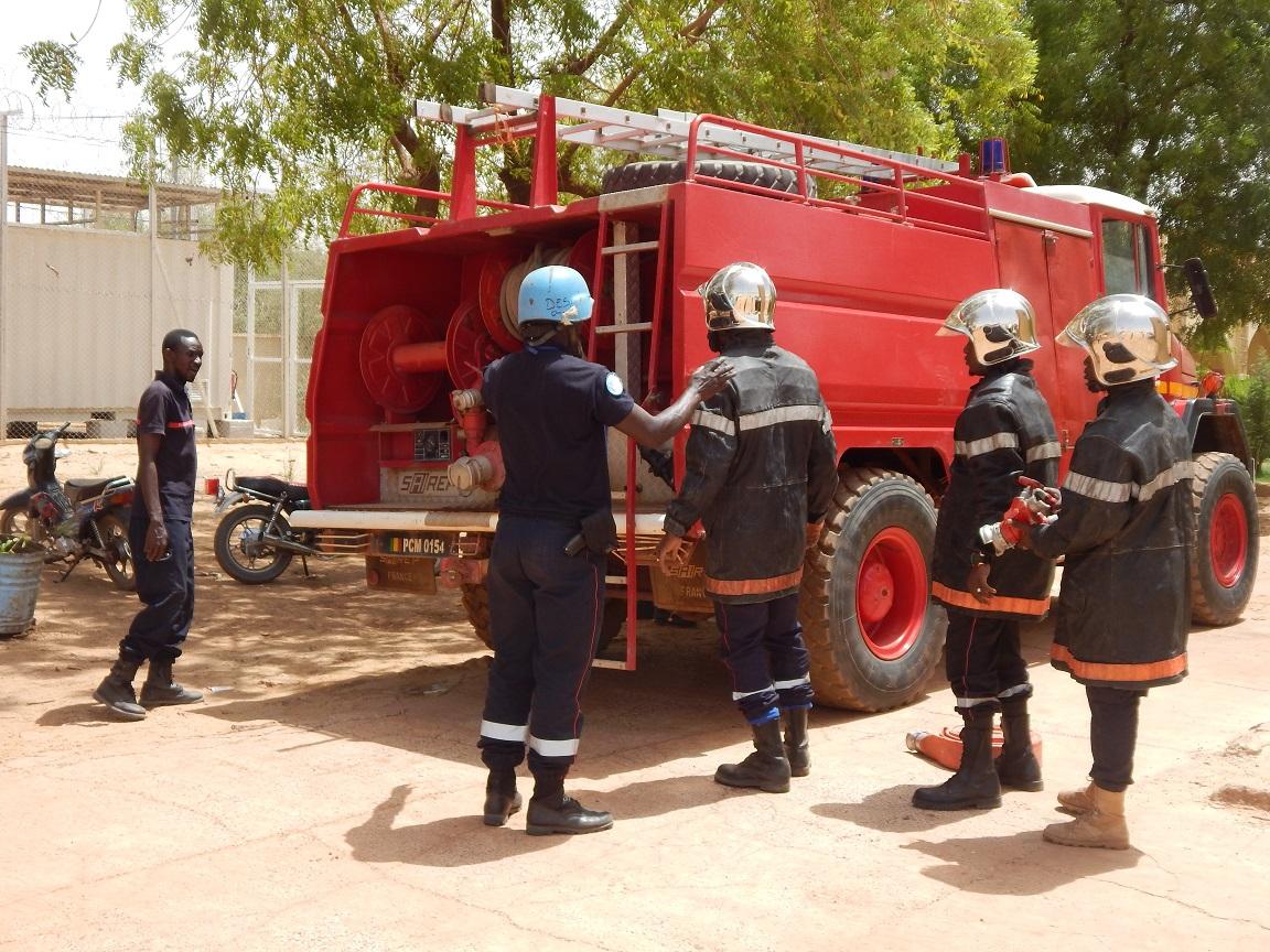Du 13 au 17 mai 2019, la Police des Nations Unies (UNPOL) à Tombouctou a organisé une formation sur la gestion des incendies et les sauvetages, au profit de 20 sapeurs-pompiers de Tombouctou. La formation s’est déroulée dans les locaux de la Direction Régionale de la Protection Civile de Tombouctou. Son objectif était d’apporter des notions essentielles au personnel de la Protection civile dans leurs interventions lors des situations d’urgence d’incendie afin de protéger les vies humaines et de limiter les dégâts matériels.