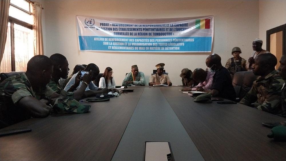 Un atelier de renforcement des responsabilités et des compétences en gestion des établissements pénitentiaires et de l'éducation surveillée de la région de Tombouctou s'est tenu du 16 au 17 mai dernier à Tombouctou. L'objectif principal de cet atelier était la gestion et la diffusion des textes législatifs et réglementaires du Mali relatifs à la détention.