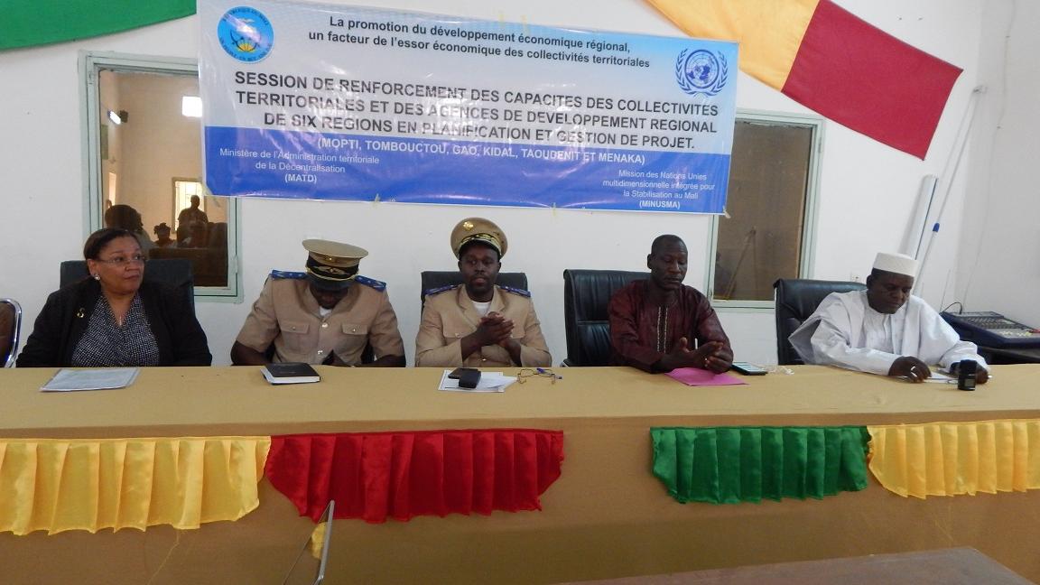 Le Ministère de l’Administration Territoriale et de la Décentralisation, à travers la Direction Générale des collectivités Territoriales (DGCT), en partenariat avec la MINUSMA, a procédé à l’ouverture d’une session de formation des collectivités territoriales (CT) et des Agences de Développement Régional (ADR). La session de formation s’est déroulée dans la salle de réunion du Conseil Régional de Tombouctou du 15 au 19 mai demain dernier. L’évènement a mobilisé tous les élus et les autorités de la Région ainsi que le personnel du bureau régional de la MINUSMA.