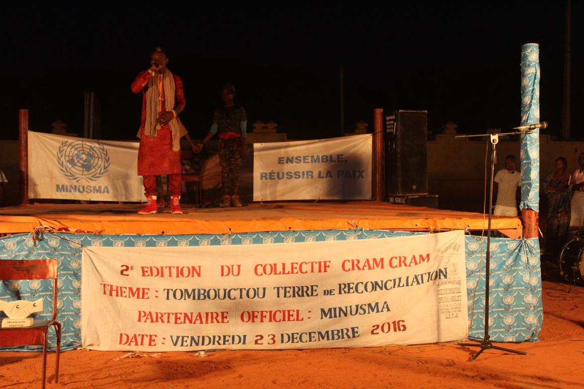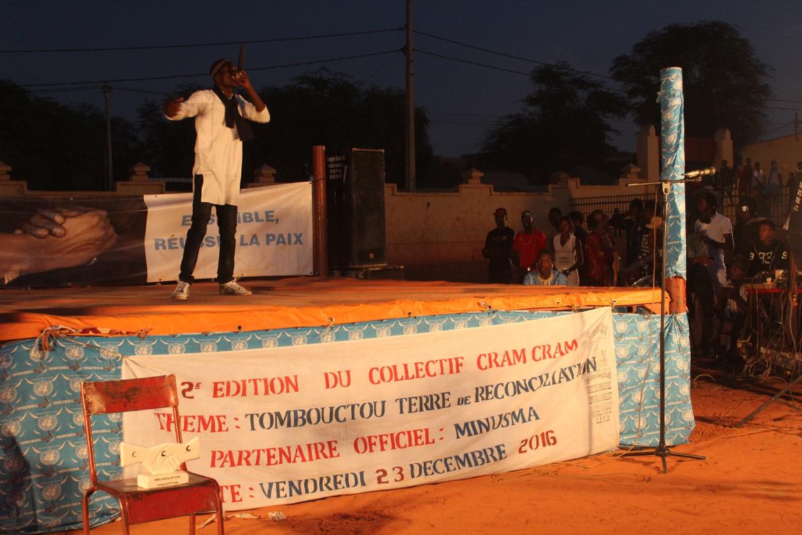 Le 23 décembre, le collectif Cram-Cram, appuyé par le Bureau de l’Information Publique de la MINUSMA, a organisé au lycée Mahamane Alassane Haidara de Tombouctou, un concours de musique et de poésie sur le thème « Tombouctou : Terre de réconciliation ». Plus de 1500 jeunes ont pris part à la deuxième édition de cet événement dont l’objectif vise à les sensibiliser à la consolidation de la paix et la cohésion sociale.