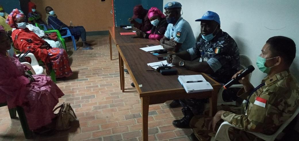 La rencontre a réuni cinquante femmes en plus des représentants des Jeunes et du Chef de quartier et était animée par des membres du Bureau de la Communication, de la Police des Nations Unies (UNPOL) et de la Force de la MINUSMA.