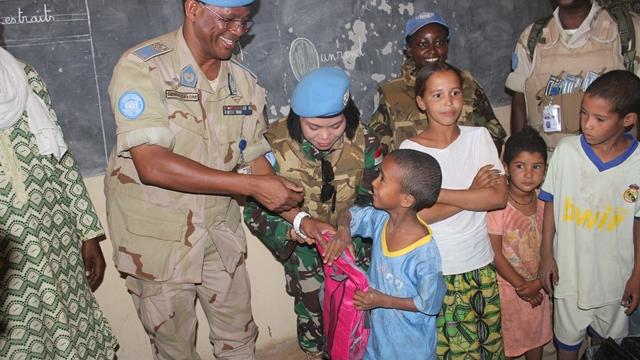 Au cours de cette visite de terrain le Général a remis des kits scolaires offerts par l’unité aérienne indonésienne à plus de 150 élèves des localités d’Acharane et Tinteylout. Il a visité le CSCOM (Centre de Santé Communautaire) de Tinteylout, où le bataillon burkinabé a offert des consultations médicales gratuites à plus de 100 personnes vulnérables, en majorité des femmes et des enfants. Des médicaments ont également été offerts par le même bataillon aux CSCOM de cette localité et à Nibkit.