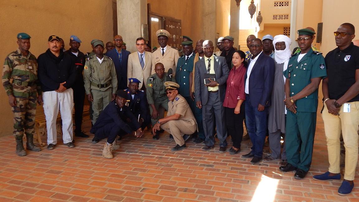 La cérémonie de lancement, présidée par le Gouverneur de la région, s’est déroulée au Centre Ahmed Baba, et a réuni une quarantaine de représentants des Forces de Défense et de Sécurité Maliennes (FDSM), venant des cinq cercles de la région, ainsi que du personnel en uniforme de la Mission onusienne. Le Directeur Régional de l’Administration Pénitentiaire et de l’Education Surveillée, le Commandant de la zone de défense N-5 de la région de Tombouctou, le Directeur Régional de la Protection civile, le Commissaire principal de la ville de Tombouctou représentant le Directeur régional, ainsi que le Chef du Bureau régional de la MINUSMA, accompagné du chef de la SAJP étaient également présents.