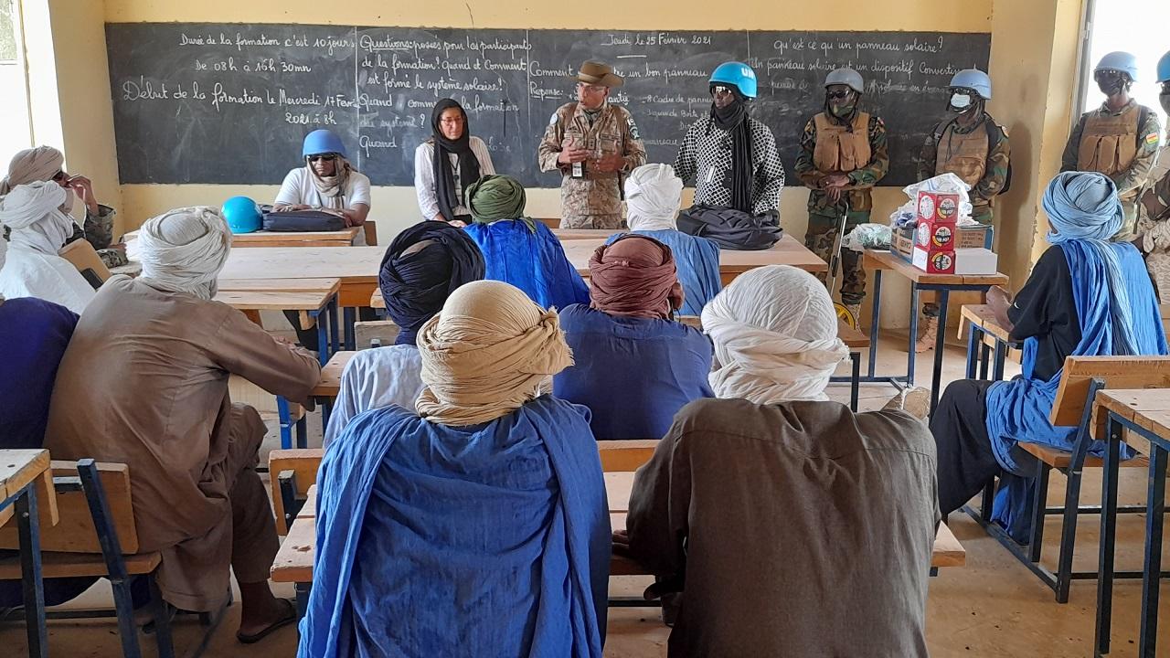 Lieutenant-Colonel Istafa JAFERY, Chef CIMIC, à rassurer ses interlocuteurs de l’accompagnement de la MINUSMA en faveur de la paix ainsi que le désir d’aider à surmonter les problèmes de pénurie d'eau, de manque d'éducation, de soins de santé inadéquats et de la relance des activités pour les jeunes et les femmes. Il a par ailleurs encouragé les uns et les autres à coopérer avec le personnel de l’ONU, notamment les militaires basés à Ber, pour leur permettre d’accomplir leur mission de protection des civils. « Votre coopération et collaboration sont essentielles pour l’exécution de notre mission mais aussi de nos activités à l’endroit des populations civiles, » a-t-il conclu.