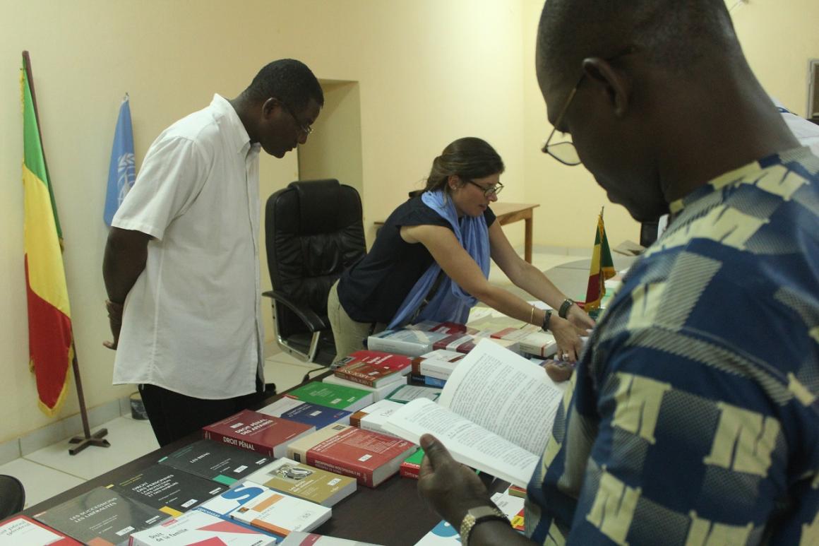 Le 4 mai dernier, la Section des Affaires Judiciaires et Pénitentiaires (SAJP) de la MINUSMA a procédé à la remise de 105 ouvrages de droit au Tribunal de Première Instance de Tombouctou. « Vous disposez aujourd’hui des références textuelles qui pourront aider les services juridiques à être plus performants grâce à la connaissance actualisée des différents secteurs de droit » a indiqué le Responsable de la SAJP, M. Macarius Zusurekuu, lors de la remise.