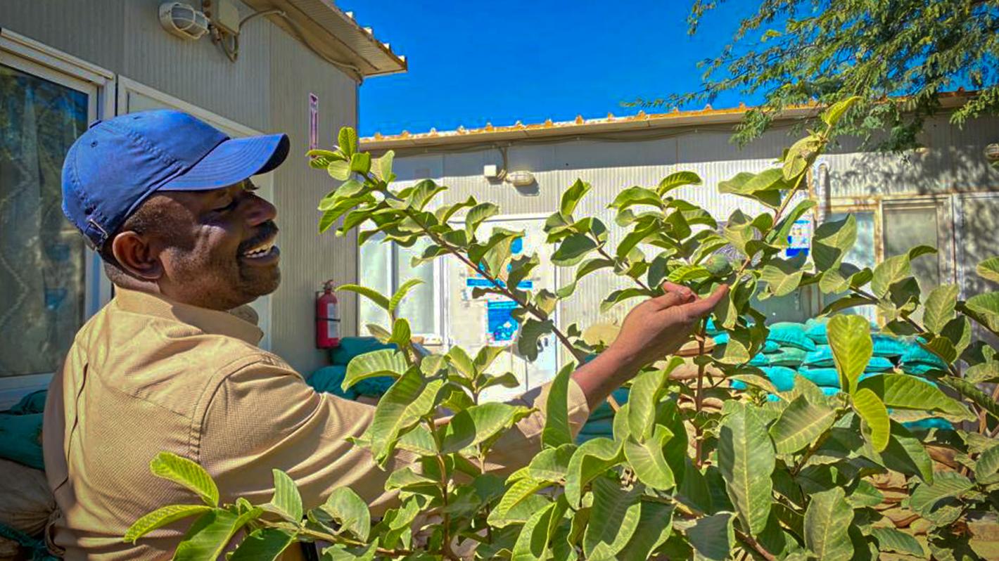 « Le jardinage est devenu contagieux » confirme Idrissa SALOU de l’unité chargée de la gestion du camp. « J’ai ramené du Niger des semis de fleurs et de plantes médicinales. J’ai planté une variété d’acacia qui traditionnellement soigne le paludisme et est aussi connue pour repousser les moustiques. J’ai toujours soigné le paludisme avec cette plante depuis ma plus tendre enfance. Aujourd’hui, beaucoup de collègues l’utilisent. La beauté dans tout cela c’est que chacun apporte un semis de son pays pour que tous en profitent finalement ». Dans l’unité dont il est chargé, Idrissa SALOU vient de recruter deux femmes kidaloises qui auront pour mission d’entretenir les espaces verts communs mais surtout, d’acquérir un savoir-faire qui pourrait leur être utile une fois de retour dans leurs communautés, comme l’a fait Hamadane CISSE. Recruté en 2019 comme jardinier journalier au camp de la MINUSMA, il est aujourd’hui considéré à Kidal comme un expert pour plusieurs espèces végétales et de maraichage, activité dans laquelle il s’est récemment lancé. « Ce travail me permet non seulement d’en savoir plus sur les techniques maraichères en me familiarisant avec de nouvelles variétés de produits mais aussi et surtout de mettre en pratique cette expérience au niveau des jardins de la ville de Kidal. En plus, cet emploi me permet de subvenir à mes besoins » se réjouit-il.