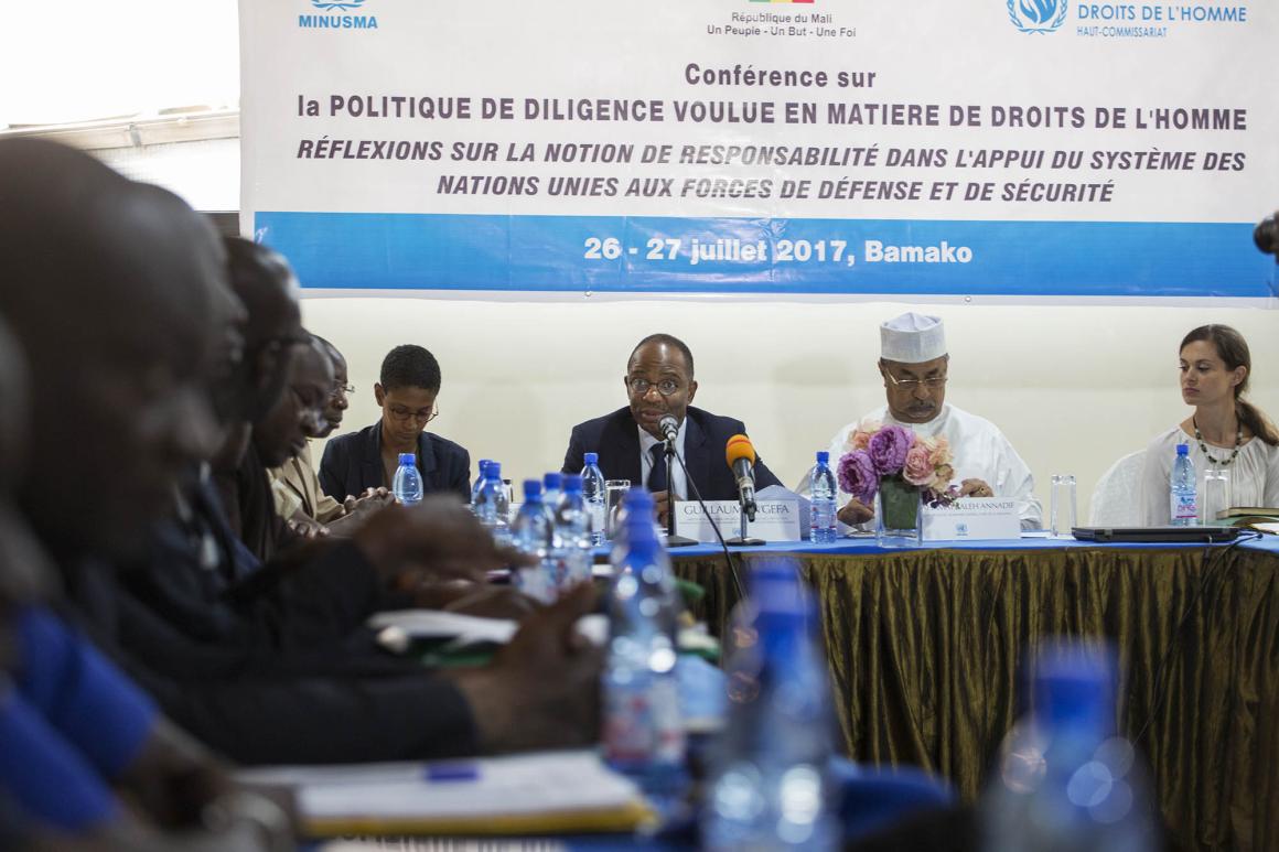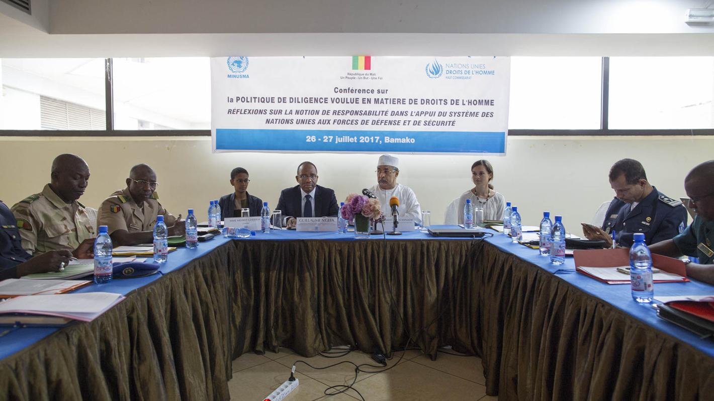 Les 26 et 27 juillet 2017, la Division des droits de l'homme et de la Protection (DDHP) de la MINUSMA a tenu, à Bamako, une conférence sur la Politique de diligence voulue en matière de droits de l'homme (PDVDH). Promulguée en 2011 par le Secrétaire général des Nations Unies, cette politique définit les mesures que toutes les entités des Nations Unies doivent prendre pour veiller à ce que tout appui qu’elles seraient amenées à fournir à des forces de sécurité non-onusiennes se réalise en conformité avec les buts et principes énoncés dans la Charte des Nations Unies, et en particulier le respect du droit international humanitaire, des droits de l’homme et du droit des réfugiés.
