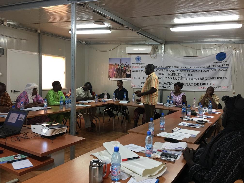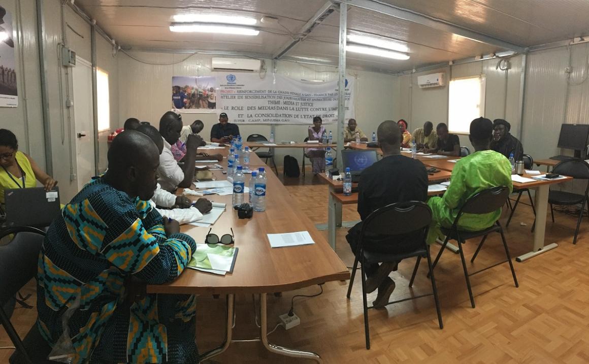 Le mercredi 9 août 2017, le Super Camp de la Mission onusienne à Gao a servi de cadre à la dernière séance d’une série d’ateliers de renforcement des capacités des journalistes et animateurs des radios libres de Gao. Financé par le Royaume des Pays-Bas, cet atelier a eu pour thème principal "le rôle des médias dans la lutte contre l'impunité et la consolidation de l’état de droit". Une initiative grandement saluée et appréciée par tous les participants mais également par M. Issa Thioune, Chef de la Section des Affaires Judiciaires et Pénitentiaires de la MINUSMA à Gao : « utiliser les communicants ou les communicateurs, les professionnels des médias pour parler et renseigner les populations sur la question de leur accès à la justice, c’était bien cela notre stratégie et nous sommes en train de réussir notre pari ».