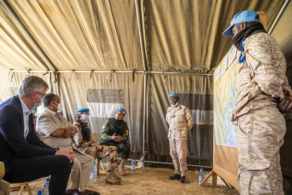 Après s’être entretenus avec le personnel de la MINUSMA dans la région, le Secrétaire général adjoint LACROIX et le Représentant spécial ANNADIF se sont rendus à Niafunké où ils ont été briefés par les éléments du Secteur Ouest de la Force de la MINUSMA sur la situation en général et en particulier, sur son opération Winner 7. Une opération qui contribue à la protection des civils dans la région et soutient le redéploiement des Forces de défense et de sécurité maliennes dans la zone. D’autres actions allant dans ce sens leur ont été exposées, notamment la formation des éléments du bataillon de l’armée malienne reconstituée. Un travail accompli par la MINUSMA, dans un contexte sécuritaire marqué par de nombreuses attaques à l’engin explosif improvisé, dont la plus récente a eu lieu le 13 janvier dernier, coutant la vie à quatre Casques bleus ivoiriens.
