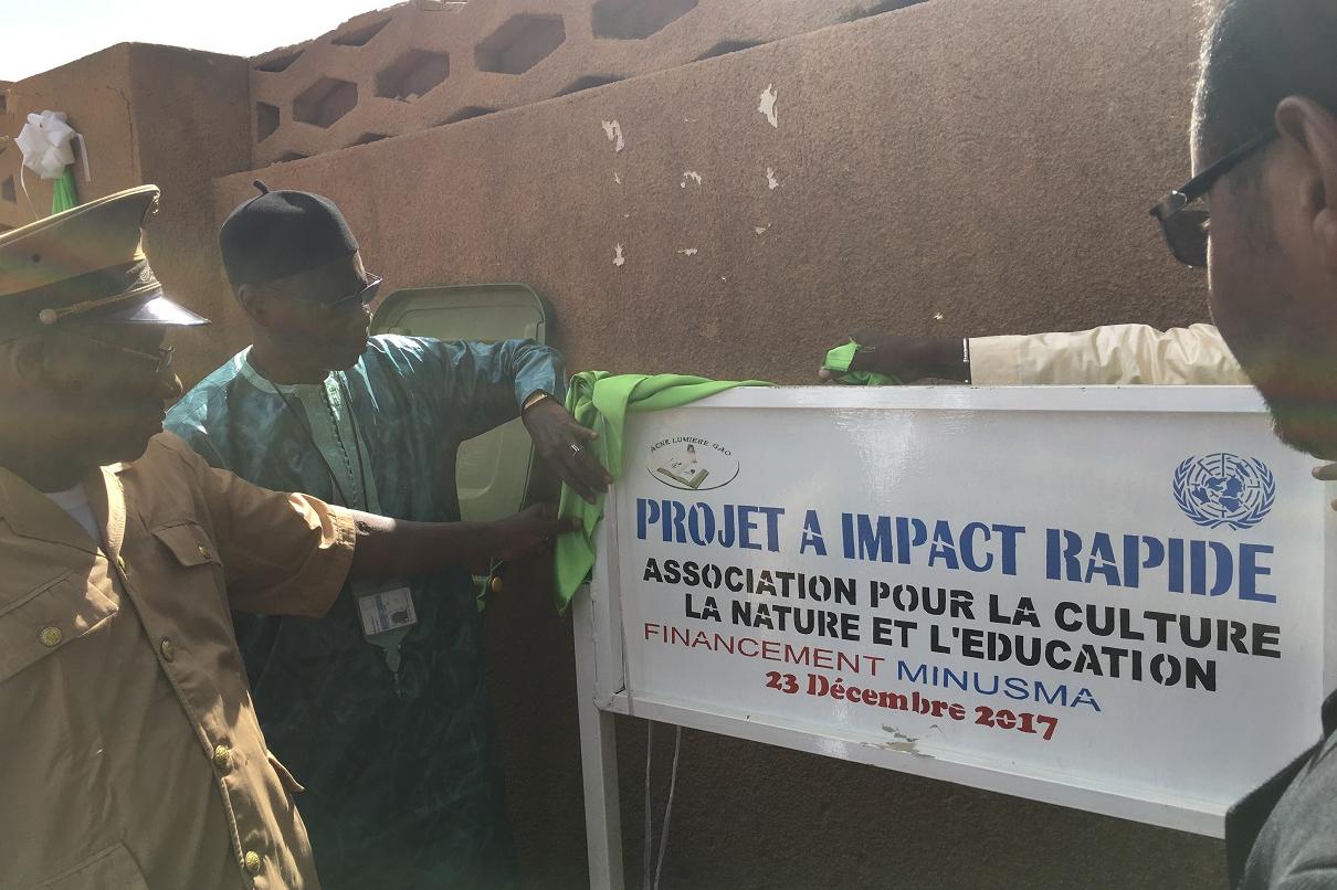 Le 23 décembre 2017, le bureau de la Minusma à Gao a inauguré la création d’une agence de communication évènementielle en faveur de la jeunesse de la région de Gao. Ce projet à impact rapide a été réalisé à travers l…