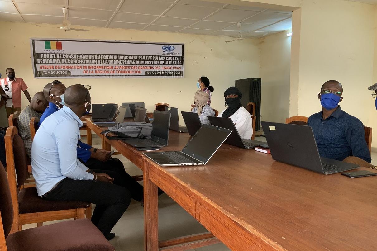 La Section des Affaires Judiciaires et Pénitentiaires (SAJP) du bureau régional de la MINUSMA à Tombouctou, a organisé un atelier de formation en informatique à l’intention des greffiers et secrétaires de greffe et de parquet…