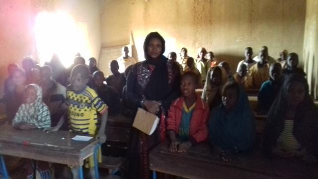 Sourire au visage, Mme Hamsatou Dahadi, enseignante en troisième année à l’Ecole Fondamentale de Tchinchinome, un quartier du village de Tacharane dans la commune de Gounzoureye, accueille les gardiens de paix de la MINUSMA dans sa salle de classe. Situé près de Gao à côté du fleuve Niger, Tacharane a une population de plus de 8 000 habitants vivant de l’agriculture, de la pêche et de l’élevage. Mme Hamsatou enseigne à 34 élèves, 13 garçons et 21 filles ; aucune absence n’est observée.