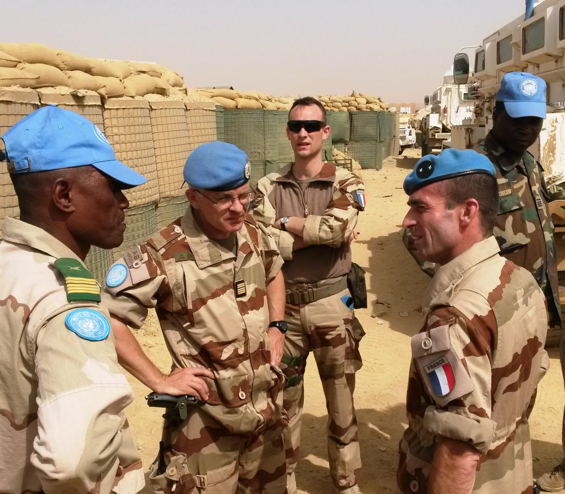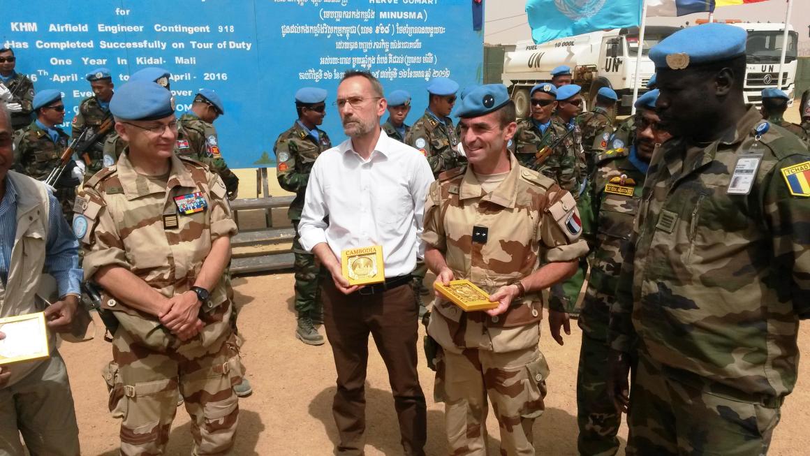 C’est à 11h00 que l’avion militaire du contingent danois qui transporte le chef d’État-major de la Force de la MINUSMA s’est posé à Kidal. Le Général de Brigade Hervé Gomart, à la tête d’une délégation restreinte, prend aussitôt le chemin du camp de la MINUSMA où l’attendent les centaines de militaires bangladais, népalais et cambodgiens qui doivent être décorés ce jour. Outre le cérémonial, une visite aux Casques bleus guinéens et tchadiens pour leur témoigner du soutien de l’État-major de la Force est également au programme.