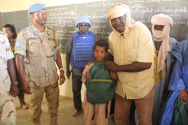 Au cours de cette visite de terrain le Général a remis des kits scolaires offerts par l’unité aérienne indonésienne à plus de 150 élèves des localités d’Acharane et Tinteylout. Il a visité le CSCOM (Centre de Santé Communautaire) de Tinteylout, où le bataillon burkinabé a offert des consultations médicales gratuites à plus de 100 personnes vulnérables, en majorité des femmes et des enfants. Des médicaments ont également été offerts par le même bataillon aux CSCOM de cette localité et à Nibkit.