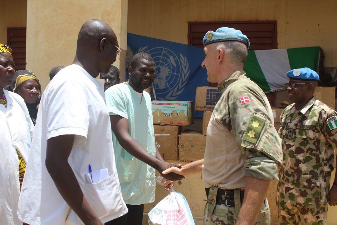 Dans le cadre de la coopération entre les militaires et les populations, le Général Michael Lollesgaard, a remis 140 kits scolaires à l’école fondamental de Dakakoro et Arsy, offert par le Secteur Ouest et des produits pharmaceutiques, d’une valeur de 1.800.7500 F CFA au Centre de Santé Communautaire (CSCOM) du village d’Inadiatafane, offert par le contingent nigérian de l’hôpital niveau II de la MINUSMA. La cérémonie de remise de ses dons s’est déroulée, le 17 aout dernier, à Bambara Maoudé, lors de sa visite de terrain pour constater le déroulement de l’opération dans cette partie du Secteur Ouest.