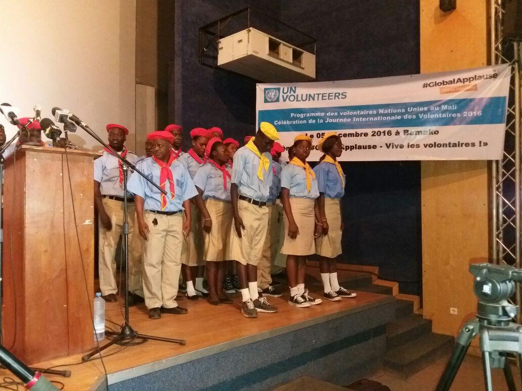 « Global Applause - Vive les volontaires !» tel était le thème de cette édition de la Journée Internationale des Volontaires. Placée sous la haute présidence du chef du Gouvernement, Le Premier Ministre Modibo Keïta, avec à ses côtés Mbaranga Gasarabwé, Coordinatrice résidente du système des Nations Unies au Mali, la cérémonie qui s’est tenue dans la grande salle du Cinéma Magic (ex Babemba), a vu la participation des Ministres Koita et Baby, en charge de la Jeunesse et de la Construction Citoyenne pour le premier et pour le second, de l’Emploi et de la Formation Professionnelle. La Coordinatrice Exécutive adjointe du Programme des Volontaires des Nations Unies, Mme Nicola Harrington était également présente ainsi qu’un public venu nombreux.