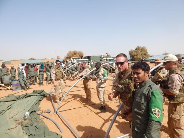A la fin de la cérémonie tenue dans le camp de rassemblement du MOC, les Casques bleus néerlandais et allemands ont monté quelques tentes, pour apprendre la technique à leurs frères d’armes.