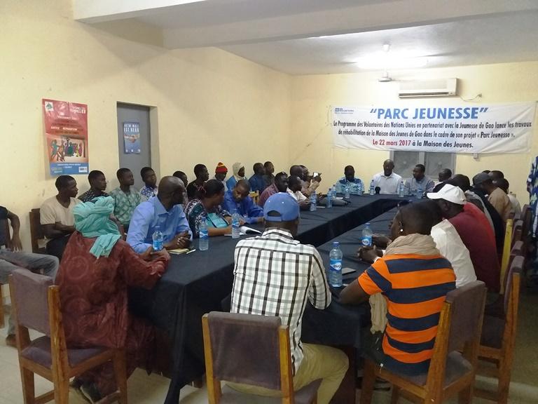 Le président du Conseil régional de la jeunesse de Gao, Almahadi Oumar, dans son mot de bienvenue, a déclaré que le démarrage des travaux de réhabilitation de la maison des jeunes est l’aboutissement d’un rêve nourri par toute la jeunesse de la cité des Askia, grâce au Programme des Volontaires des Nations-Unies. Cette réalisation donne un espoir à toute une jeunesse : celui de se voir outillée pour faire face aux défis de la paix et de la cohésion sociale.