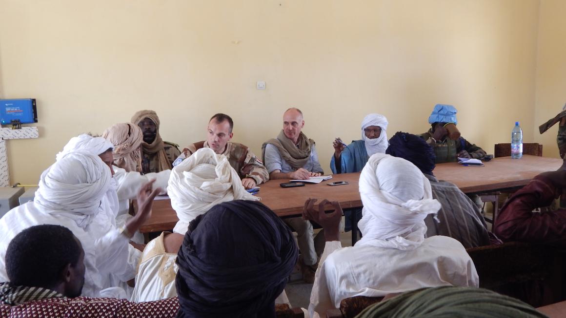 M. Ibrahim Ag Effanfané, Maire de la commune et son adjoint, Abdoul Malick ont accueilli la délégation de la Mission onusienne dans leur salle de réunion. Plusieurs notabilités de la place ainsi que les membres de la société civile y ont aussi assisté. Parmi les sujets abordés figuraient, en particulier, la montée de la criminalité, le braquage, les vols de véhicules, la sècheresse, le manque d’emploi pour les jeunes, l’Accord de Paix, la Conférence d’Entente nationale. Le lieutenant-colonel Thomas Brucker, représentant le Commandant du Secteur-Est, a expliqué à l’audience, l’objectif de l’Opération Euphorbia-14 et ainsi que le résultat attendu.