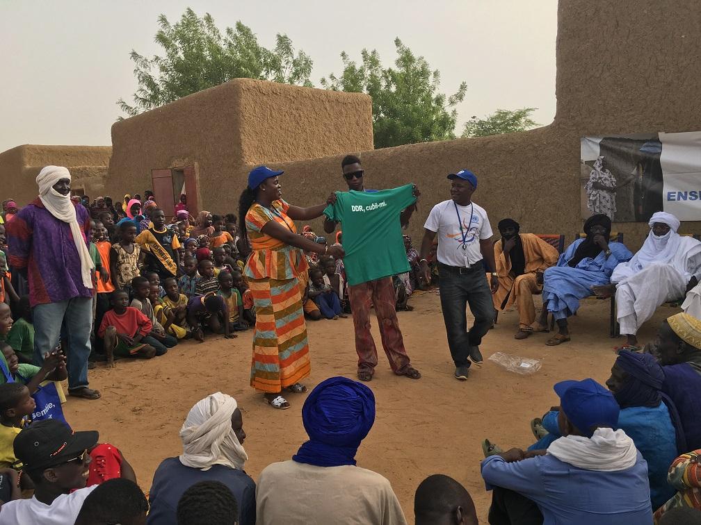 Le vendredi 7 juillet 2017, plus de 380 résidents du village Zindiga, dans la commune rurale de Soni Aliber, ont été informés sur le travail de la MINUSMA et de ses différentes composantes. Au cours d’une réunion publique, des représentants des sections Réforme du Secteur de la Sécurité et du Désarmement Démobilisation et Réinsertion (RSS/DDR), de la division des Affaires civiles et de l’Equipe Conduite et Discipline, ont échangé avec les villageois et recueilli leurs points de vue sur les questions brûlantes de l’heure, notamment celle de la réduction de la violence communautaire. Un exercice régulièrement organisée par le Bureau de l’Information Publique de la MINUSMA.