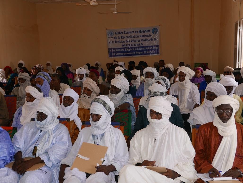 Environ 150 participants ont pris part à cette rencontre qui a mobilisé les chefs coutumiers et religieux, les responsables administratifs, les organisations de jeunes et de femmes, la société civile. Elle a conjointement été organisée par le ministère de la réconciliation nationale et la section des affaires civiles de la MINUSMA. Pour M. Issiaka Dangnossi, Chef de bureau intérimaire de la MINUSMA à Ménaka : « la MINUSMA sera dans son rôle classique d’accompagnement de l’Etat malien pour la paix, la cohésion sociale, le processus politique. La MINUSMA pourrait aussi innover, à travers des réponses ponctuelles à apporter à des défis qui se poseraient sur le terrain (…) En fonction des besoins que la cellule régionale de réconciliation nationale va présenter à la MINUSMA, elle étudiera les réponses concrètes et adaptées à apporter ».