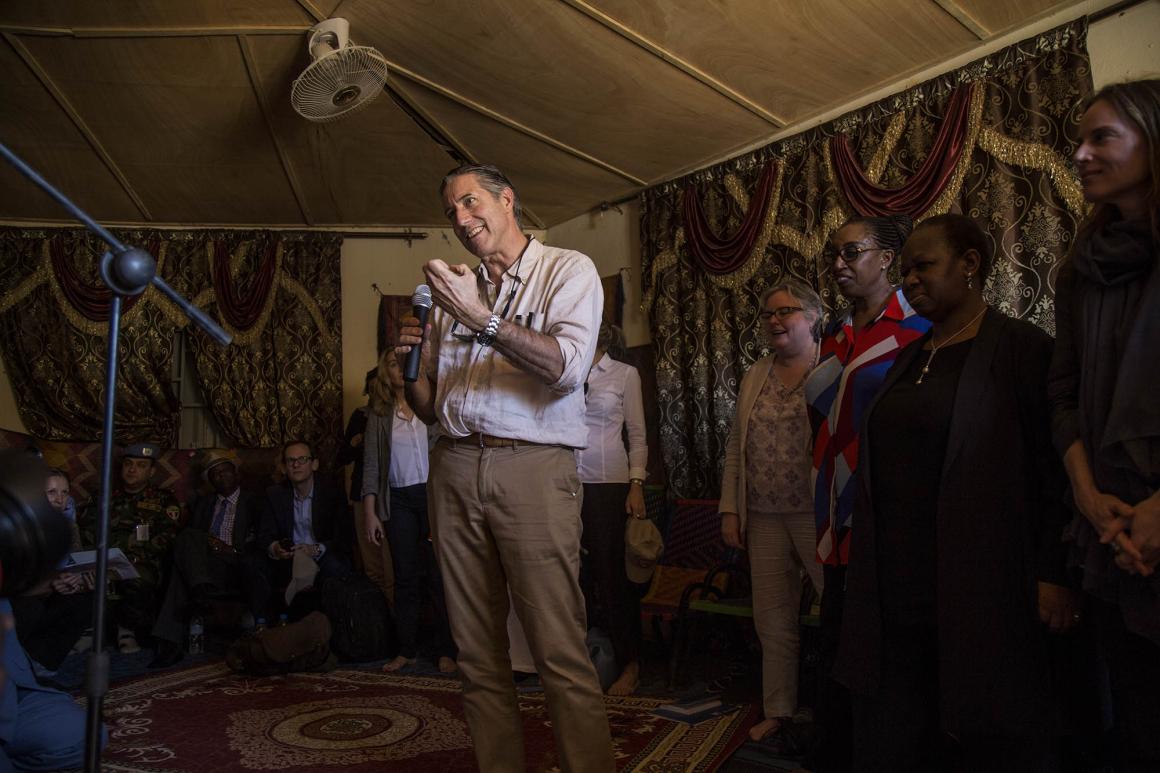 Accompagnés par Mmes Joanne Adamson et Mbaranga Gasarabwé, les Sous-Secrétaires généraux Keita et Fernandez-Taranco ont visité le projet "Case de la paix", un espace de dialogue et de cohésion sociale pour les femmes dans le nord du Mali. Le projet est financé par le Fonds de Consolidation de la Paix et est mis en œuvre par le FNUAP, ONU Femmes et la MINUSMA. Conclu il y a un an, le projet a permis une bonne coopération entre la société civile, les ONG et les services de l’Etat, ainsi qu’une inclusion transversale de la thématique genre dans les processus de la Commission Vérité Justice et Réconciliation (CVJR). Après Gao, la délégation a poursuivi sa visite de terrain par la ville de Mopti. Sur place, plusieurs projets basés dans les régions de Mopti et Ségou, conçus par les agences onusiennes présentes au Mali (PAM, HCR, FAO, ONU Femmes, UNESCO, OIM, UNICEF) et mis en œuvre par les Ministères, la société civile et la MINUSMA, entre autres partenaires, ont été présentés à la délégation des Sous-Secrétaires généraux des Nations Unies. Ces projets visent à appuyer et accélérer la mise en œuvre de l’Accord pour la paix et la réconciliation nationale, en renforçant le rôle des femmes, des jeunes et des leaders communautaires et religieux dans la gestion de conflits, mais aussi la mise en œuvre de la stratégie jeunesse du G5 Sahel et la lutte contre l’extrémisme violent. Selon M. Fernandez-Taranco : « Nous sommes venus ici pour écouter la voix de la société civile, pour voir de quelle façons, l’ONU peux continuer à appuyer leurs efforts et leur donner une place dans cet vision de réconciliation national qui doit s’étaler dans le nord et centre du Mali ».