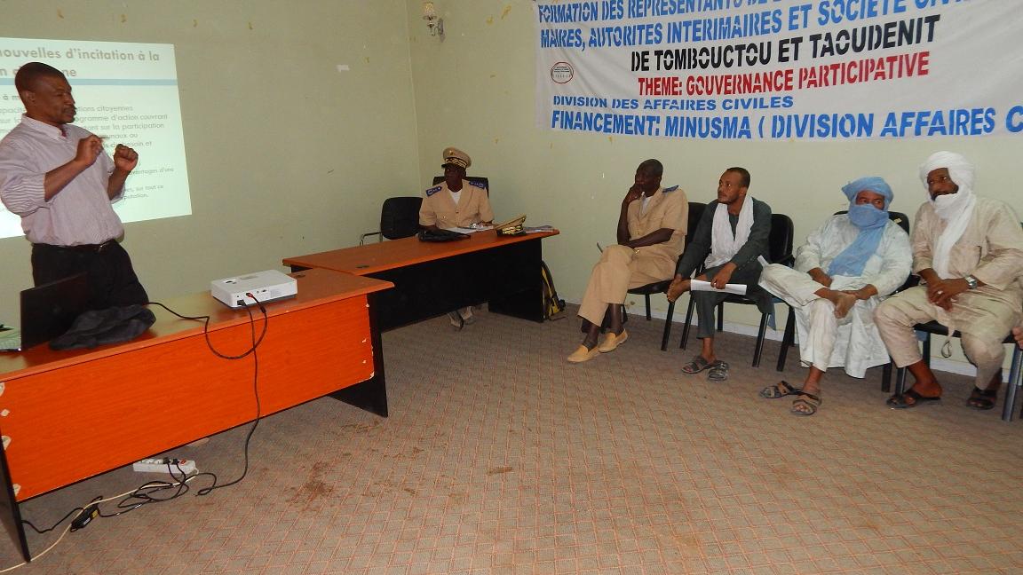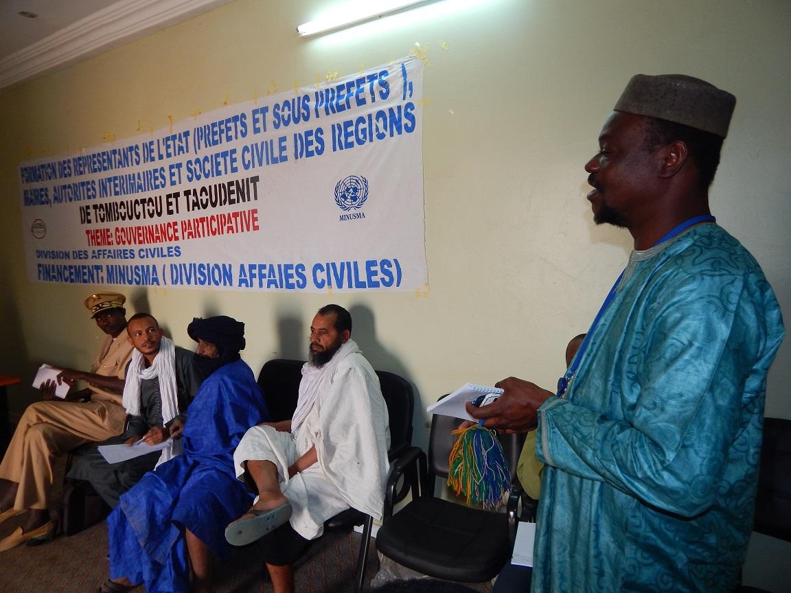 Le Bureau régional de la MINUSMA à Tombouctou, à travers sa Division des Affaires civiles, a organisé les 19 et 20 mars derniers, un atelier sur la gouvernance locale, au profit des acteurs de la région de Taoudéni.