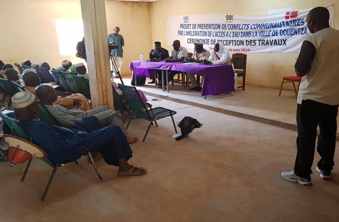 La cérémonie de remise de ce projet du Fonds fiduciaire (Trust Fund) s’est tenue le mardi 18 juin 2019 à la mairie de Douentza. Elle a vu la présence du préfet du cercle de Douentza, du maire de la commune de Douentza, des autorités locales et villageoises ainsi que des représentants de l’hydraulique et de la SOMAGEP. Etaient également présents le représentant de la cheffe du bureau de la MINUSMA de Mopti, les sections des Affaires Civiles et Stabilisation et Relèvement ainsi que l’ONG ODI SAHEL, le partenaire de mise en œuvre de cet important projet.