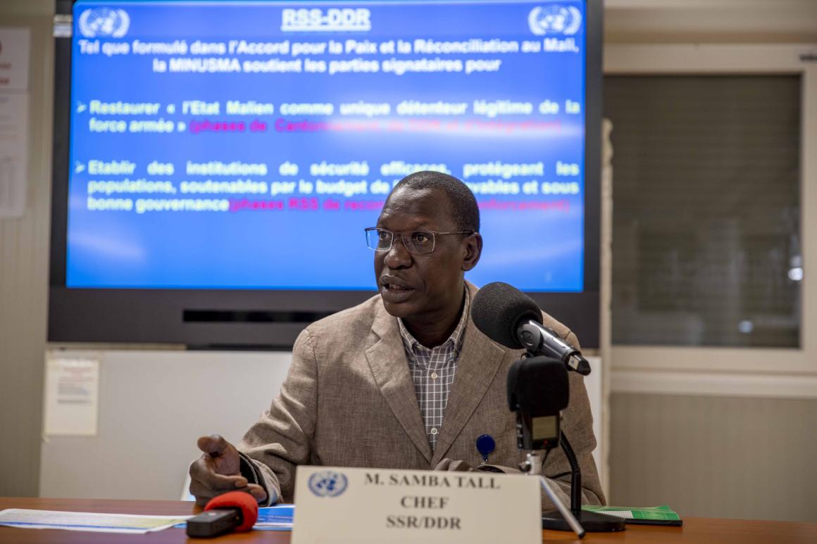 Bienvenue au point de presse de la MINUSMA. Aujourd’hui, notre invité est M. Samba Tall, Directeur de la Section Réforme du secteur de la sécurité / Désarmement, Démobilisation, Réinsertion (RSS/DDR) de la MINUSMA. M. Tall présentera l’ampleur de l’appui de la MINUSMA à la RSS notamment le processus de DDR ainsi que l’intégration des ex-combattants des groupes armes aux Forces de défense et de sécurité maliennes.