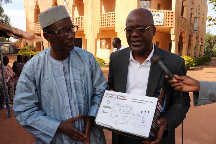 Le 13 décembre 2019, la MINUSMA à Mopti a officiellement remis au Conseil Régional 1000 kits solaires. Composés de lampes torches, de plusieurs ampoules, d’une radio, d’un chargeur de téléphone mobile et d’un panneau mobile, ces kits sont destinés aux communautés et ménages les plus vulnérables des huit cercles de la région de Mopti. Une contribution du Royaume du Danemark au fonds fiduciaire en appui à la paix et la sécurité au Mali, et qui s’élève à plus de 250 millions de francs CFA (exactement 252.640.206 FCFA).