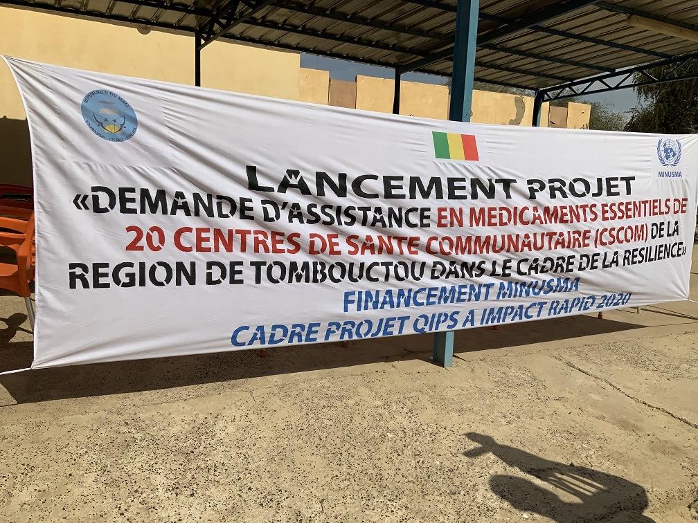 Avec les répercussions de la crise sanitaire liée à la Covid-19, de nombreux centres de santé font face à un manque de produits pharmaceutiques et médicaux. Cette donation va au profit des localités où les structures sanitaires de base fonctionnent malgré le défi de l’approvisionnement. Ce sont entre autres Ber, Razelma, Gargando, Soumpi, Hamzakoma, Inadiatafane, Gossi, Douekiré, Tintelout, Léré et Adarmalane, situés dans la région de Tombouctou.« C’est toujours une grande satisfaction pour la MINUSMA de contribuer à la résilience des populations et au relèvement des organes de santé communautaires à travers les actions de relèvement » a dit Abdoul Karim Abdel KADER qui représentait à cette cérémonie le chef de la cellule des actions civilo-militaires.