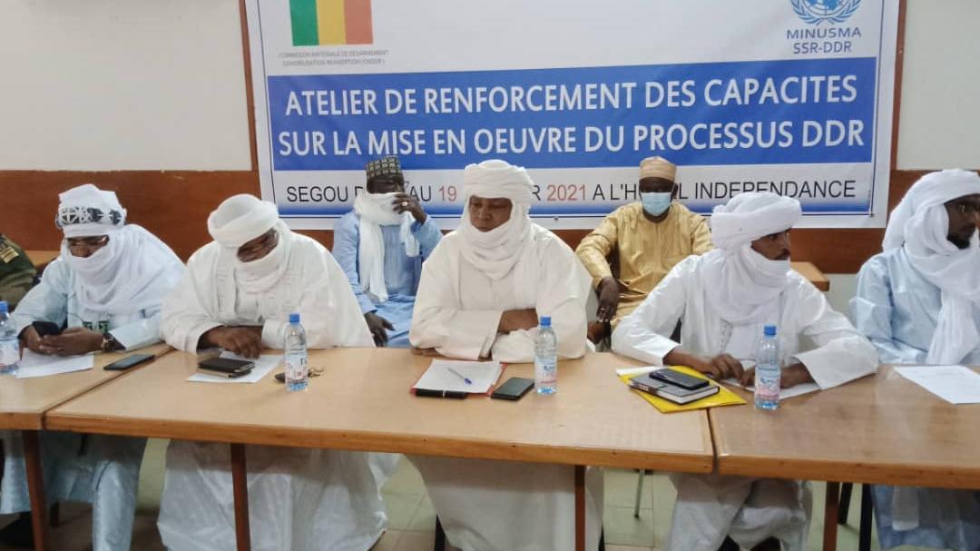 Un atelier de renforcement des capacités sur la mise en œuvre du DDR des ex-combattants, a eu lieu du 16 au 19 février dernier à Ségou. Organisé par la Commission Nationale de DDR (CNDDR) et soutenu par la Division de Réforme du Secteur de la Sécurité - Désarmement, Démobilisation et Réinsertion (RSS-DDR) de la MINUSMA, il était coprésidé par les Présidents de la CNDDR et de la Commission Nationale d’Intégration (CNI).