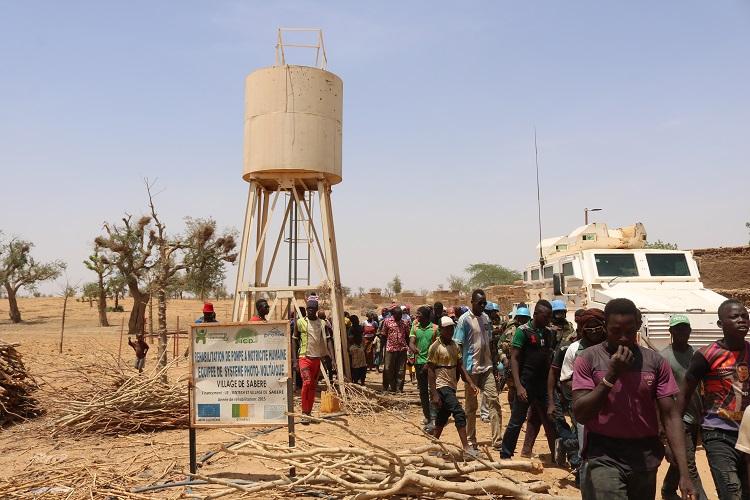 Le troisième projet, porté par la Division des Affaires civiles de la MINUSMA, est axé sur la réhabilitation du système d’adduction d’eau de Yorou. Dans le cadre de ce projet, en plus de la réparation du château d’eau du village et de la réalisation d’une borne fontaine, cette localité a été dotée d’une cuve principale d’une capacité de vingt mètres cubes. Elle vient en remplacement de celle défectueuse de 10 mètres cubes. À cette nouvelle cuve s’ajoute une nouvelle pompe électrique, ses accessoires et une source d’énergie photovoltaïque. Pour P. DOUYON, membre de la communauté dogon de Yorou, l’appui de la MINUSMA est un grand soulagement, notamment à travers les projets générateurs de revenus au profit des deux communautés. Il a souligné que les villages ont su maintenir le rythme des rencontres d’échanges et de dialogue pour recoudre ensemble le tissu social endommagé.