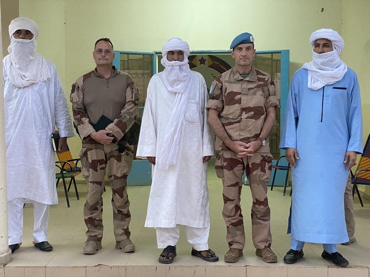Le 24 juin, le FCOS a fait le déplacement à Aguelhok où il a assisté à une rencontre avec les populations de la ville, en présence du maire et son adjoint, du vice-président des Autorités intérimaires de Tessalit, du vice-président de la société civile et de représentants des chefs de fractions, de la jeunesse et des femmes. Les discussions ont porté sur des questions liées aux aspects de sécurité mais aussi au développement. « Enattaquant notre camp le 2 avril dernier, les terroristes ont, de manière délibérée, mis en danger nos soldats de la paix, mais également les populations locales », a déclaré le Général GIVRE.