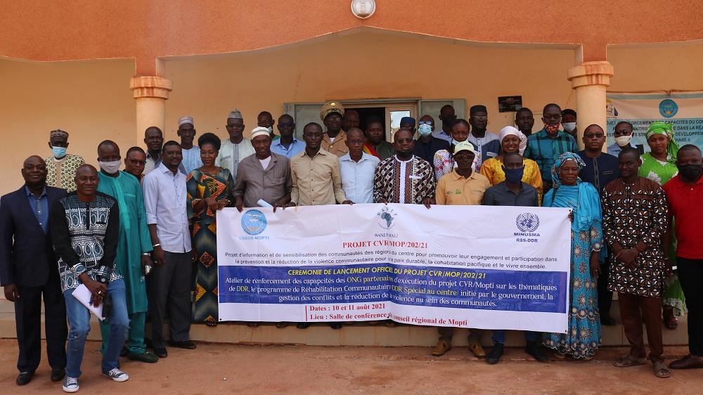 La cérémonie d'ouverture, le premier jour, a été présidée par un représentant du Gouverneur, accompagné du Président du Conseil Régional de Mopti, et du Maire de la commune de Mopti qui ont tous salué cette démarche de sensibilisation, non seulement sur la RVC, mais aussi qui facilite une meilleure compréhension du DDR spécial appelé Programme de la Réhabilitation communautaire au Centre.