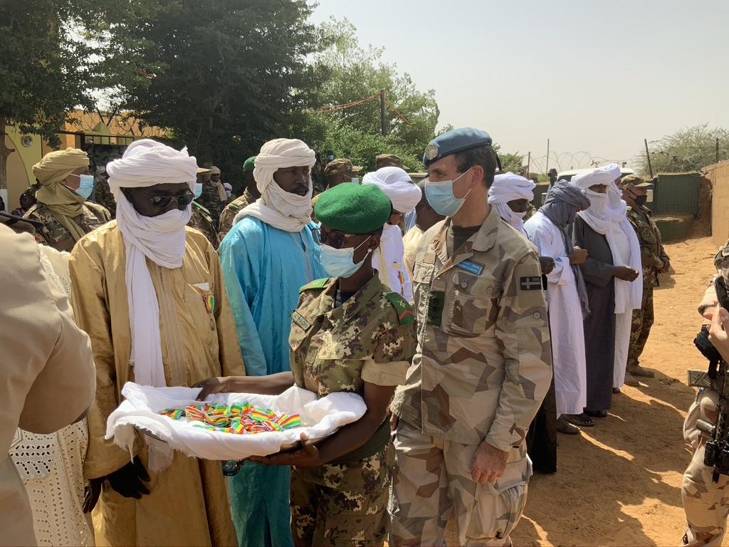 Après la réunion, une cérémonie de décoration des membres du CTS, du Mécanisme Opérationnel de Coordination (MOC) et des membres de l’Equipe mixte d’observation et de vérification (EMOV) s’est déroulée au camp du MOC de Gao. Elle a été présidée par le Gouverneur de la région, le Général Moussa TRAORE, en présence du Commandant de la Force de la MINUSMA. Les deux personnalités ont déposé une gerbe de fleur sur la stèle construite en hommage aux victimes de l’attentat contre ledit camp du MOC de Gao du 17 janvier 2017.
