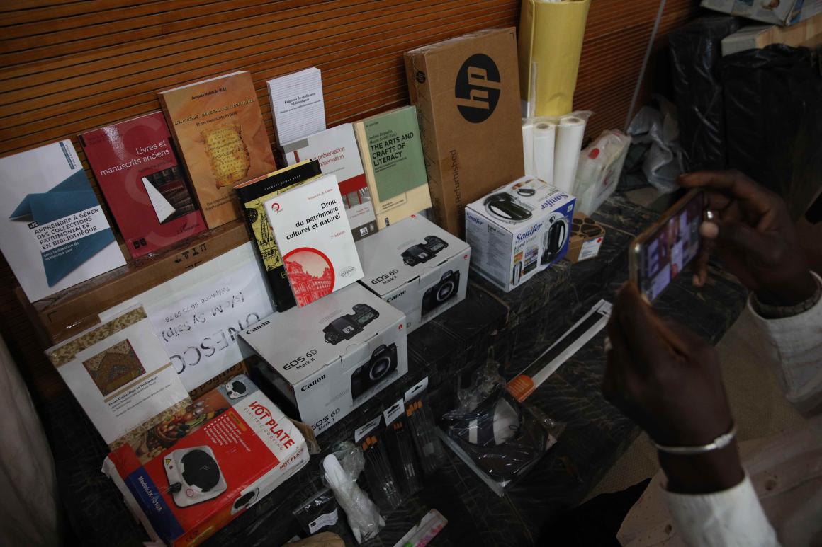 Les conditions de travail des étudiants et professeurs de cette filière étaient difficiles voire pénibles, en raison du manque de matériel. C’est donc pour lever cette difficulté que l’UNESCO et la MINUSMA ont offert, le 26 octobre dernier, du matériel et des équipements à l’institut. Pour Riccardo MAIA, le Chef du bureau de la MINUSMA à Tombouctou, à travers cette donation, il s’agit « d’une part d’appuyer la formation des jeunes qui se sont dédiés à la préservation des manuscrits et, d’autre part, de gagner le pari de l’avenir ». Le lot de matériel remis est composé de tables lumineuses, d’appareils photos, de numériseurs, de loupes, d’ordinateurs, en plus d’une large variété de petits équipements, « indispensables à toute intervention sur les manuscrits, » selon Maria Luisa RUSSO, du Centre pour l’Étude des Cultures Manuscrites (CSMC) de l’Université de Hambourg, en Allemagne.