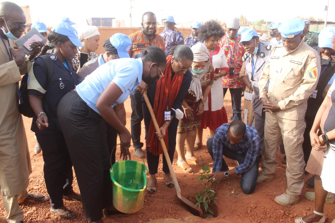 Le 7 mars, en prélude à la commémoration de la Journée internationale des femmes, le personnel du bureau régional de la MINUSMA, hommes et femmes, a choisi de reboiser le camp avec quelque 50 plants.