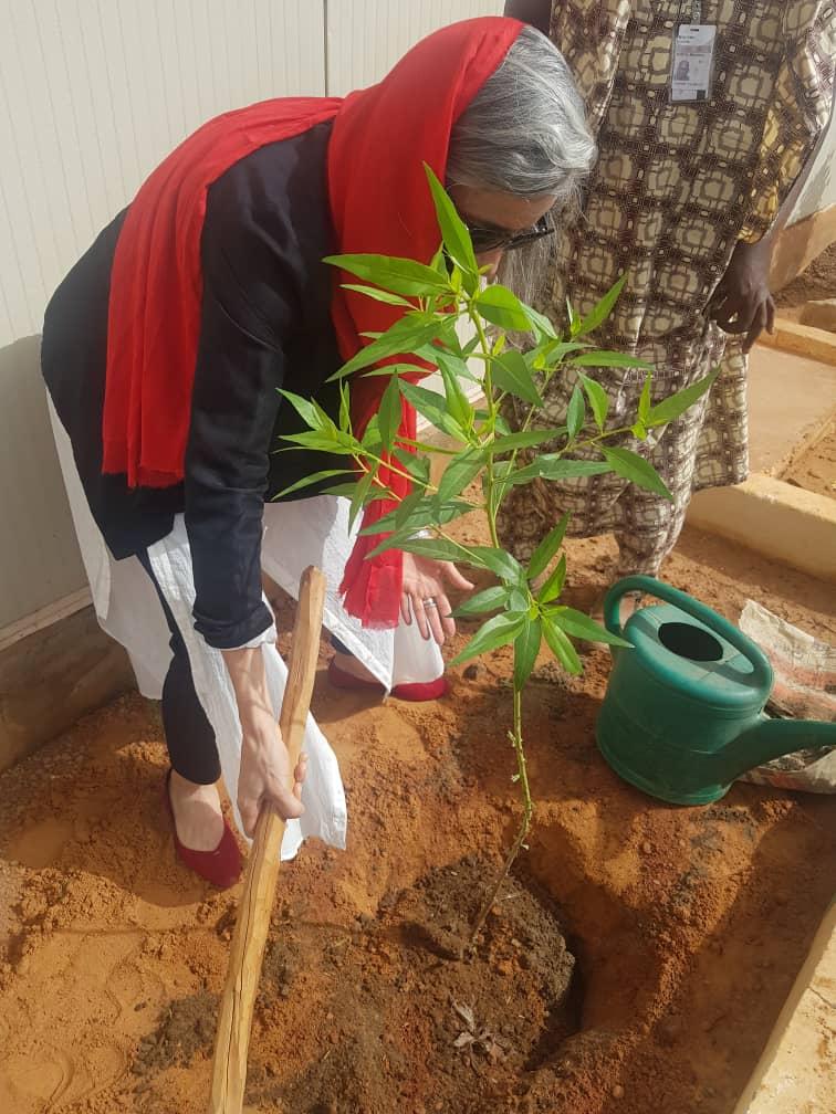 Grace DIAMOND est à l’initiative de ce vaste projet environnemental. Fonctionnaire régionale de l’administration. « Je suis née au Kenya et j’ai grandi dans un milieu où les arbres ont toujours occupé une place importante. J’ai toujours été entourée de fleurs et diverses autres plantes et partout où je vais, je veux transporter un bout de chez moi, » confie-t-elle. Grace DIAMOND n’est pas à sa première expérience de jardinage dans un camp de la MINUSMA. En effet, elle a contribué à lancer une telle initiative à Tombouctou. Ceci avait alors retenu au cours d’une visite l’attention du Représentant spécial du Secrétaire général des Nations Unies, El-Ghassim WANE. « Le RSSG a apprécié l’initiative et a souhaité que la même chose se fasse dans les autres bureaux régionaux. J’ai éprouvé une grande joie à ce moment» raconte-t-elle avec fierté.