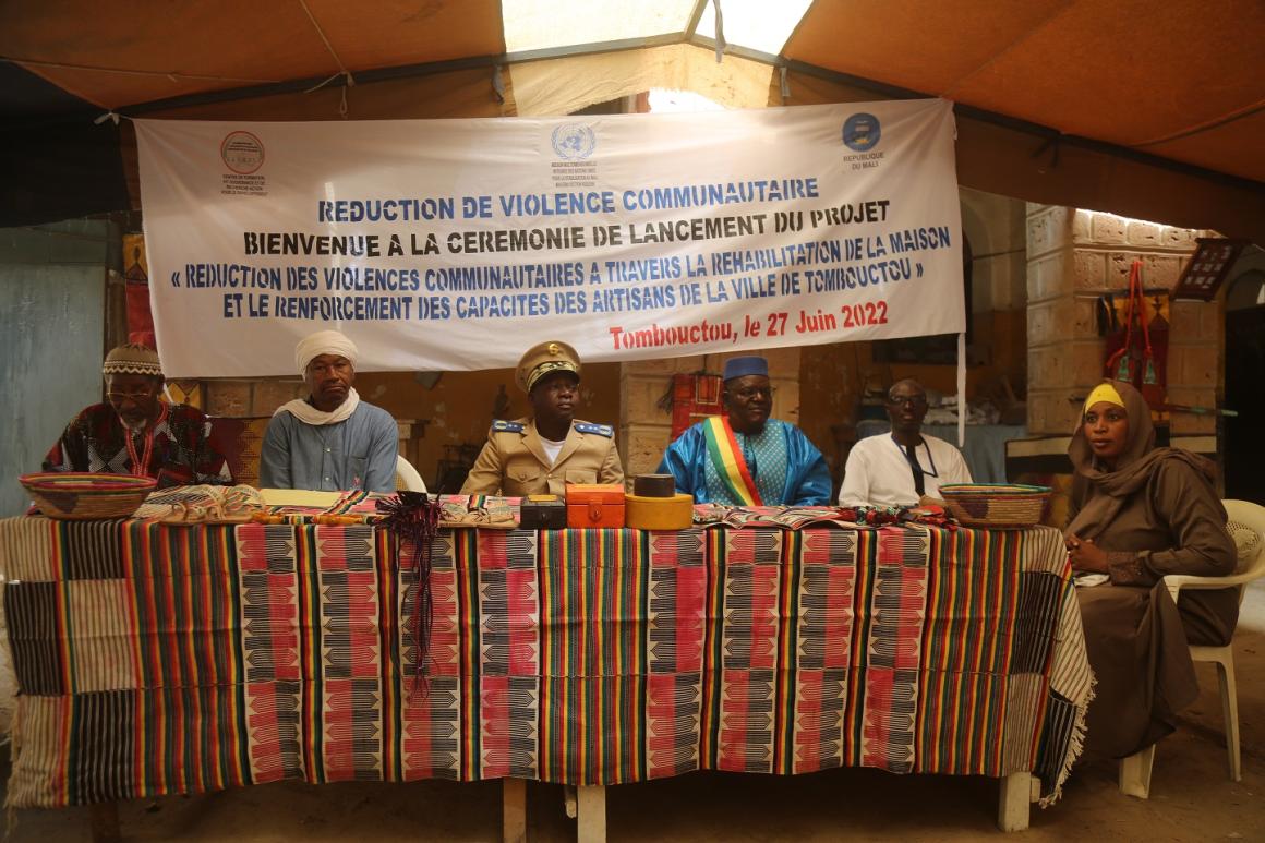 À Tombouctou, le projet de réhabilitation de la Maison des artisans et de renforcement de leurs capacités a été lancé le 27 juin dernier. Financé par la MINUSMA, il participe à la lutte contre les violences communautaires en contribuant au relèvement économique des artisans. 316 artisans dont 101 femmes bénéficieront de cette initiative à laquelle la MINUSMA a consacré 54 millions de Francs CFA.