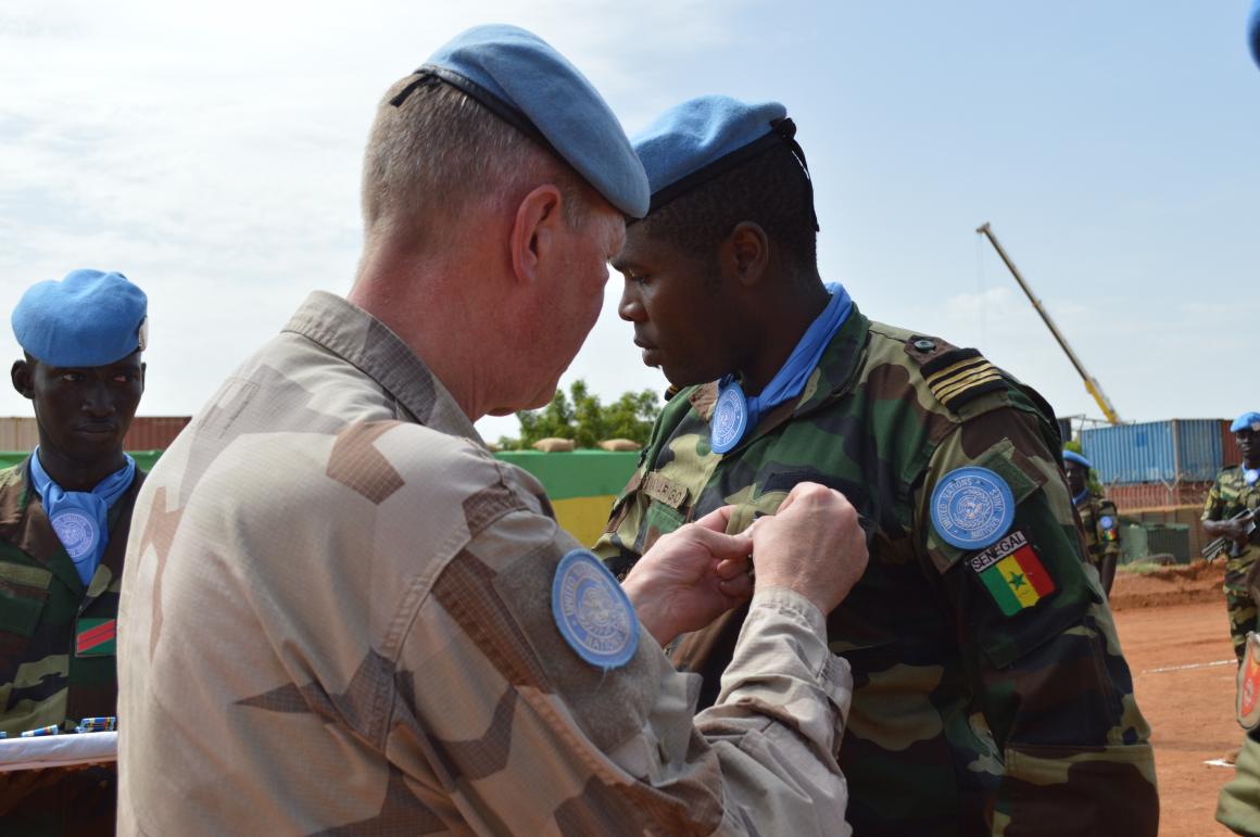 107 Casques bleus du contingent sénégalais du génie déployés dans la région de Gao ont reçu la médaille des Nations unies le 9 septembre 22 au camp de la MINUSMA.